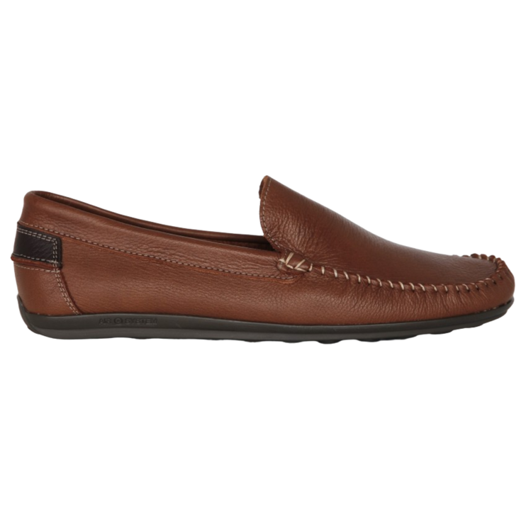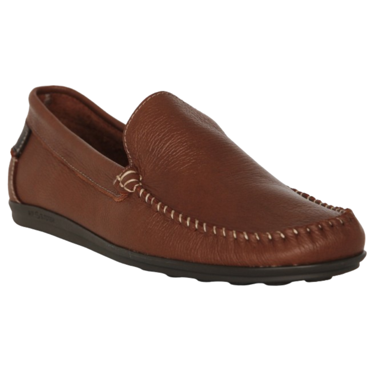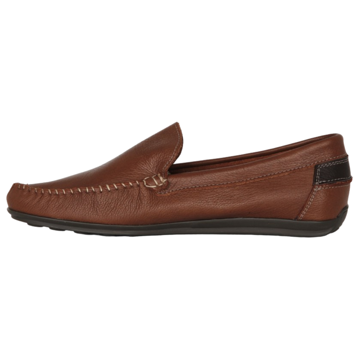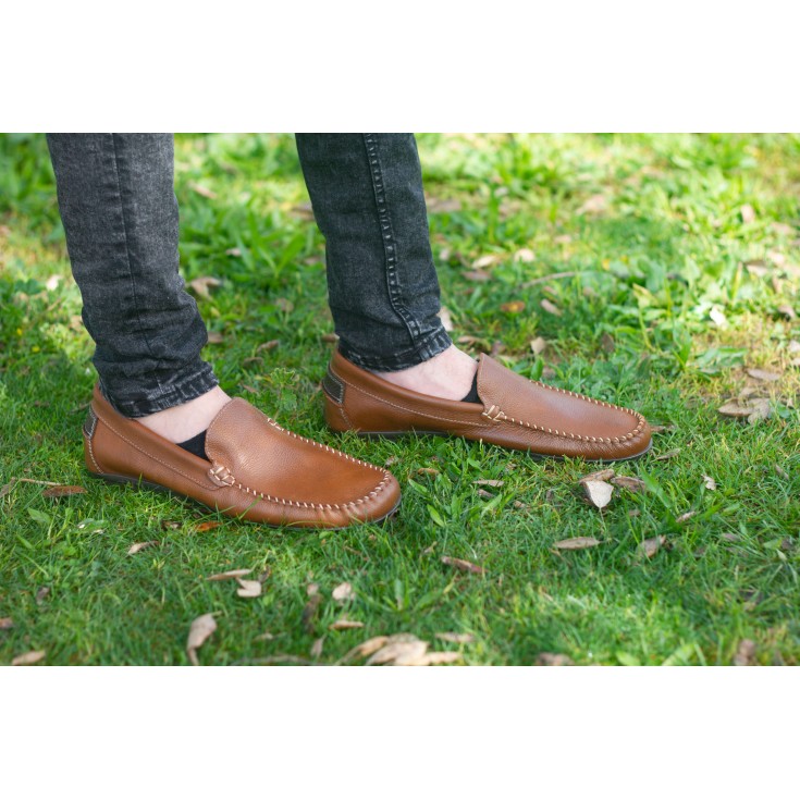 Zapato mocasín Gari, modelo de piel en color cuero, con diferentes pespuntes en color claro, plataforma de 1 cm y cuña de 2 cm, modelo muy flexible para garantizar la comodidad al caminar.