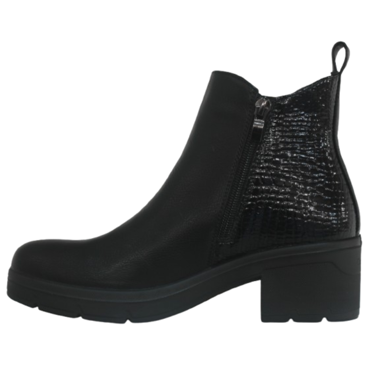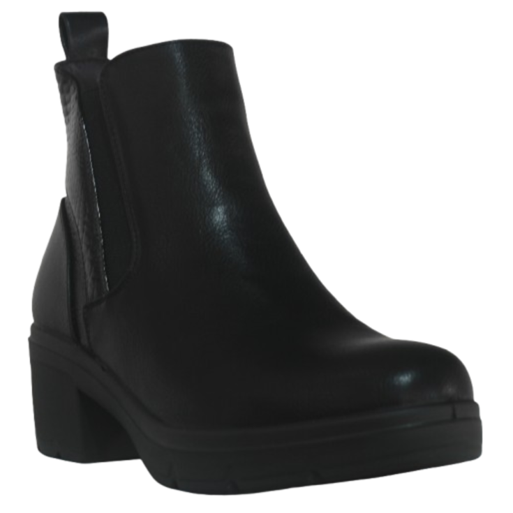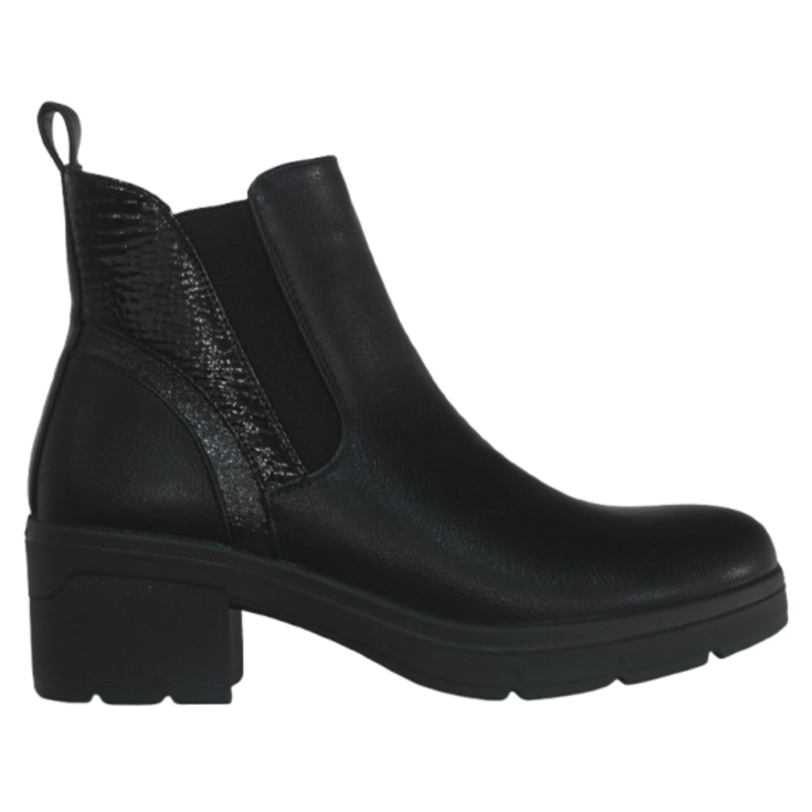 Sencillo, elegante y atemporal: así es el Botín Tacón Medio Titania Negro, un modelo imprescindible que combina comodidad, estilo y versatilidad. Su diseño tipo chelsea con elástico lateral se adapta perfectamente al pie, mientras que el acabado texturizado aporta un toque moderno y sofisticado.