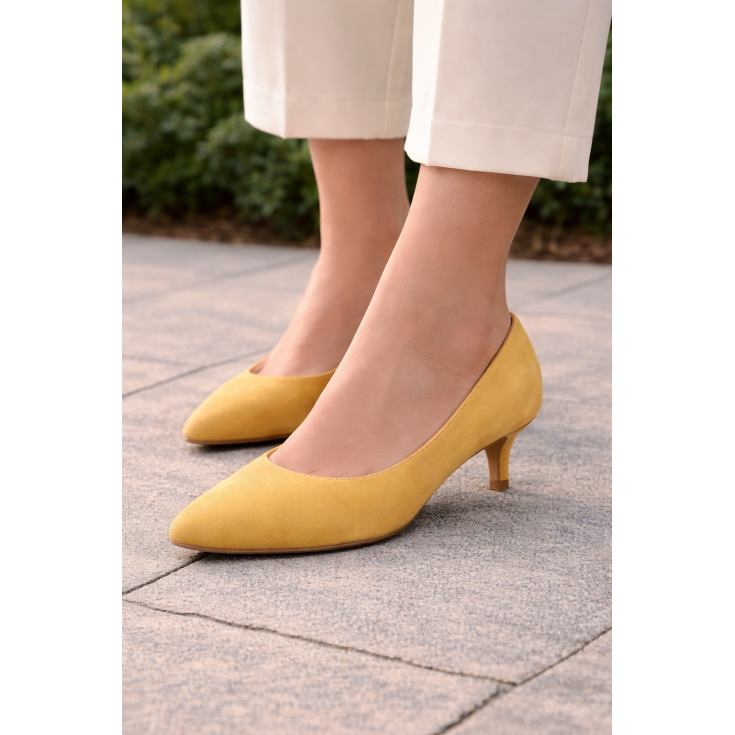 El Zapato de Salón Celestia Mustard es la elección perfecta para quienes buscan un toque de color elegante y diferente. Su tono mostaza aporta luz y personalidad a cualquier conjunto, mientras su silueta clásica de salón mantiene la sofisticación que nunca pasa de moda. Un diseño versátil pensado para destacar con estilo propio.