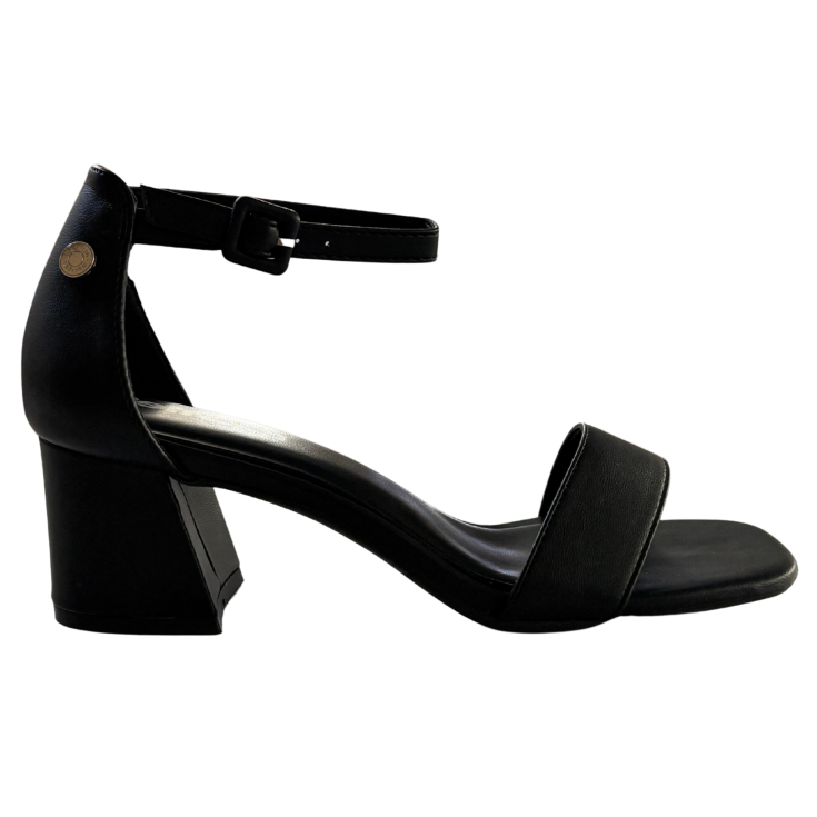 El acabado negro aporta una sensación de elegancia sobria que realza cualquier look de noche, mientras el tacón de 5,5 cm asegura confort y equilibrio durante horas.
