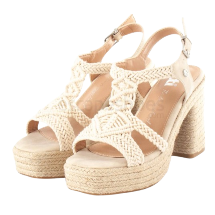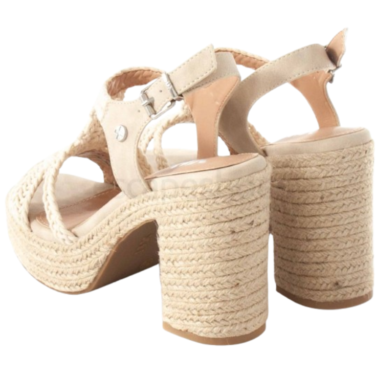 Déjate enamorar por el estilo natural de la sandalia de tacón textil en color hielo de XTI, modelo 142839.