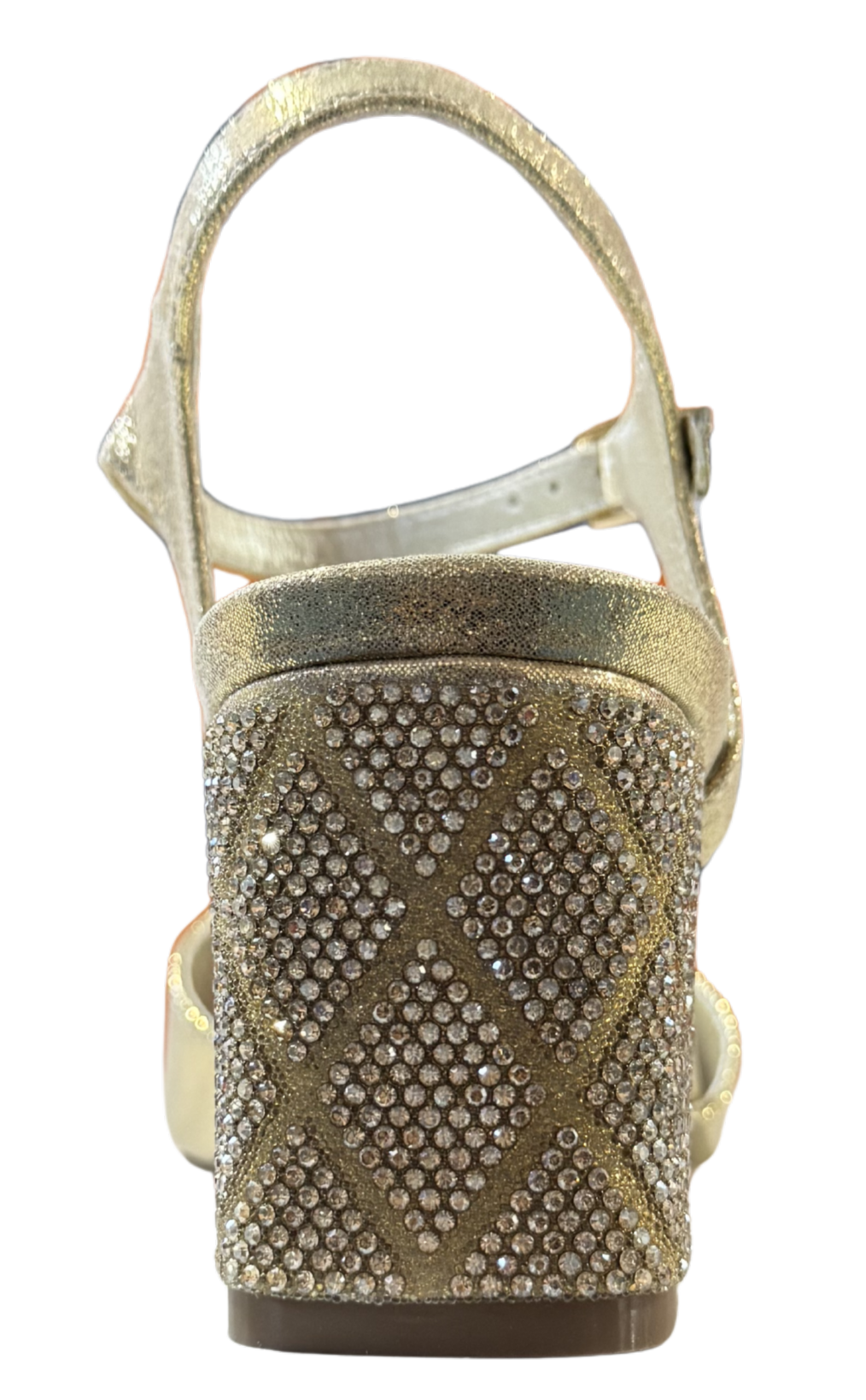 ● Tacón ancho de altura media decorado con pedrería para un toque exclusivo