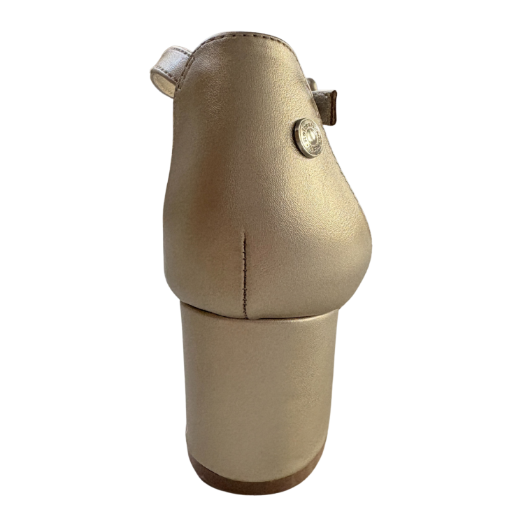 El acabado dorado refleja la luz de forma delicada, aportando un brillo elegante que realza cualquier look de fiesta, mientras el tacón de 6 cm proporciona una pisada firme y confortable.