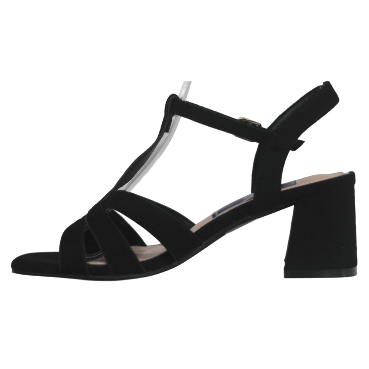El acabado negro con brillo leve crea reflejos elegantes que acompañan tus movimientos con sutileza. Al rozar las tiras cruzadas, sentirás una textura delicada que se ajusta al contorno del pie, combinando firmeza y suavidad.