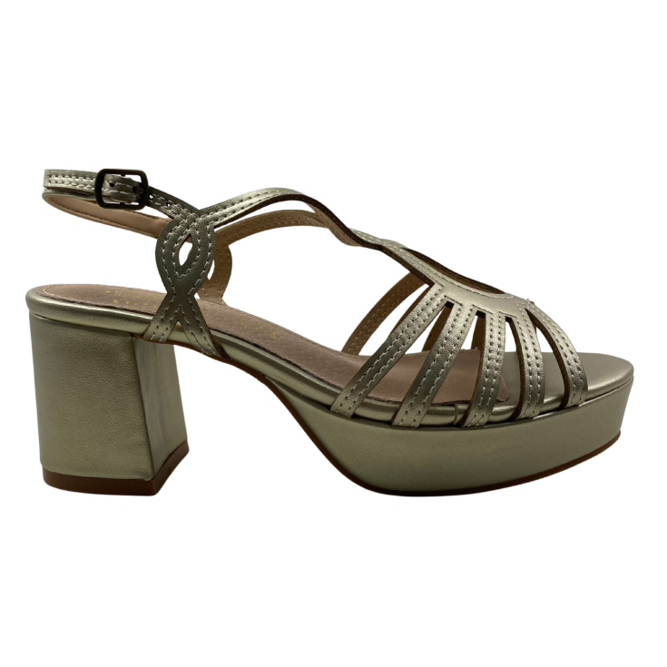 Altura, elegancia y brillo en perfecta armonía. La Sandalia Fiesta Ventara Oro es el equilibrio ideal entre sofisticación y comodidad, diseñada para acompañarte en bodas, eventos y celebraciones donde cada detalle cuenta. Su acabado dorado metalizado y su diseño de tiras estilizadas realzan el pie con un efecto delicado y femenino.