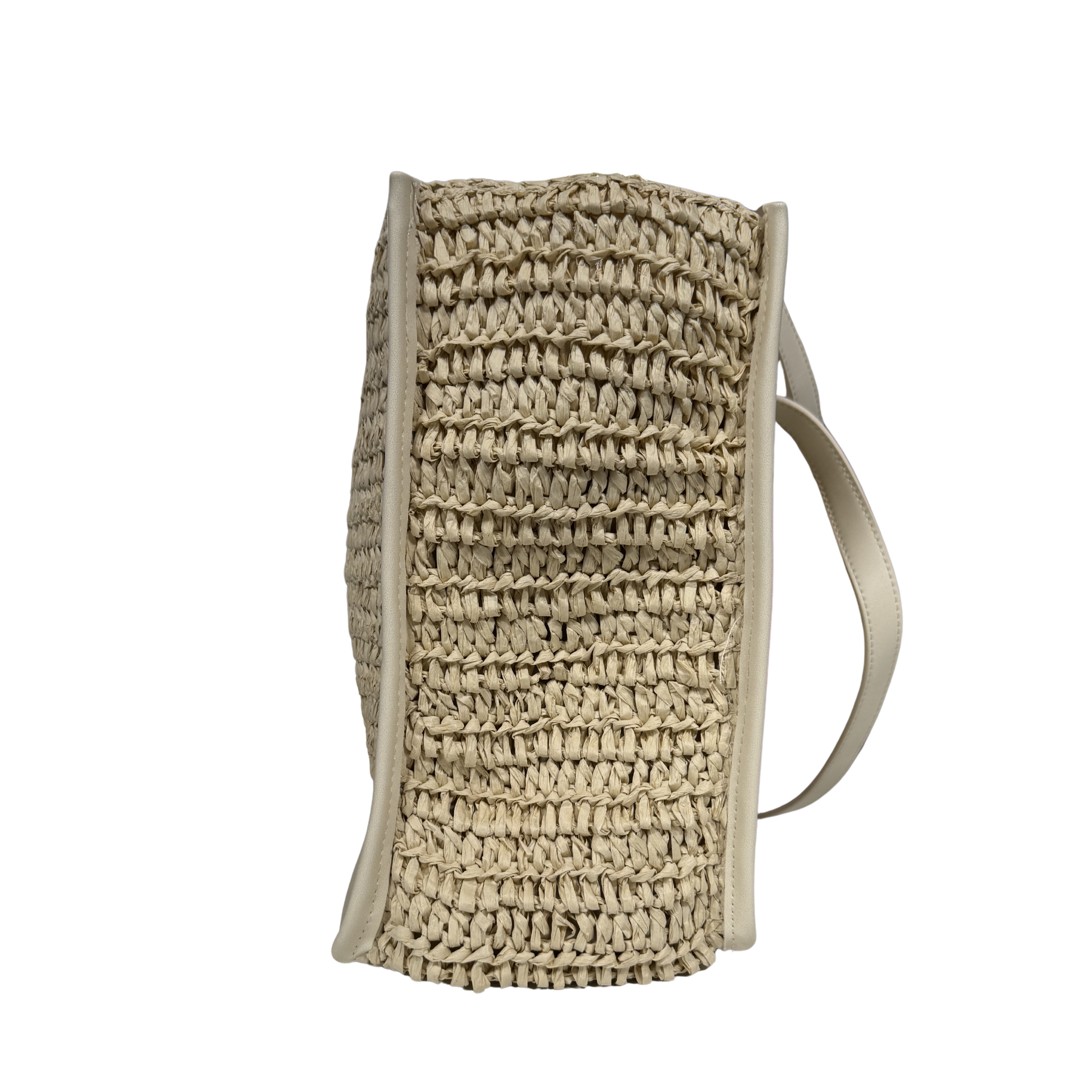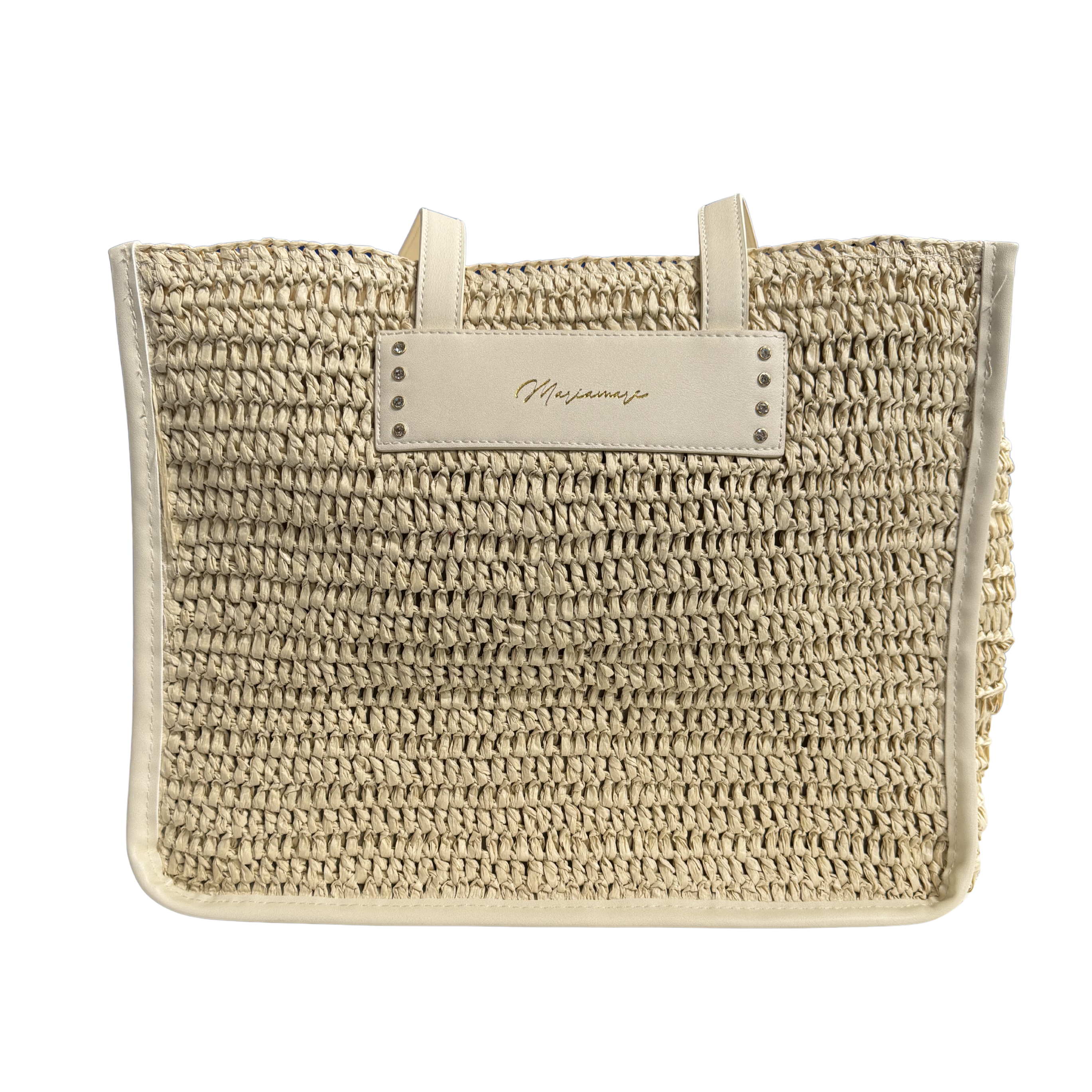 Descubre el equilibrio perfecto entre estilo natural y elegancia con este bolso en tono beige de Maria Mare. Su diseño en rafia trenzada aporta un aire fresco y veraniego, ideal para completar tus looks diarios con un toque sofisticado y desenfadado.