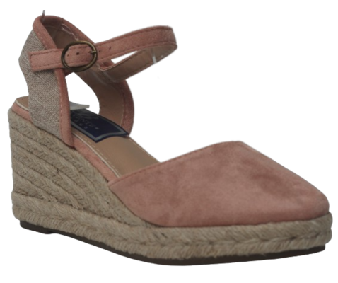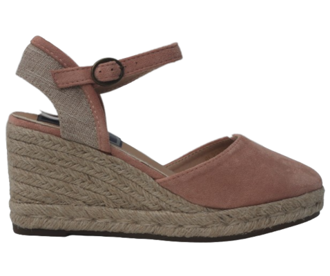 Cuña de esparto Azahar para mujer, en color nude. Cuña media de 6 cuerdas y 2 cuerdas en plataforma. Tacón de 7,5 cm y plataforma de 2 cm.  Cierre de hebilla con tira al tobillo. Cerradas en punta y talón destalonado. Plantilla cómoda. Magníficas para combinar con unos vaqueros y una camiseta básica.