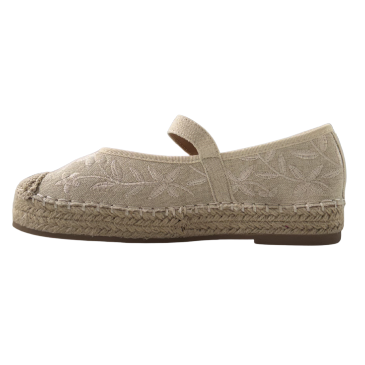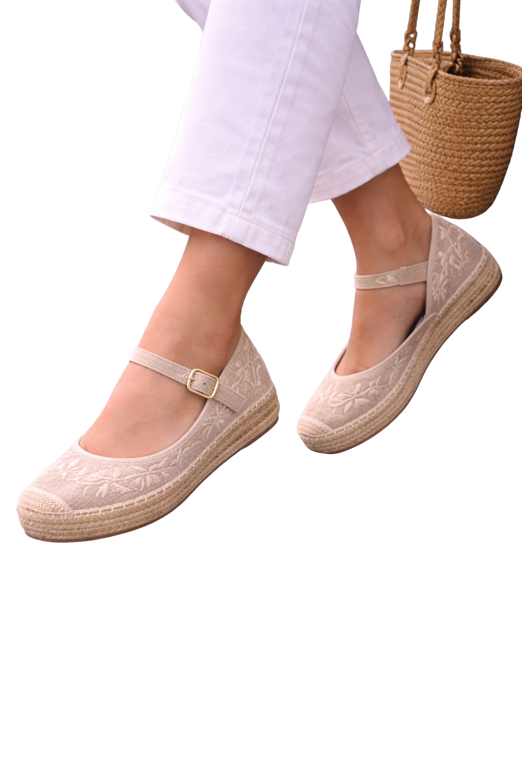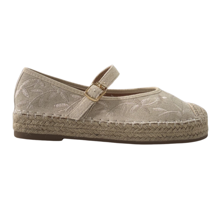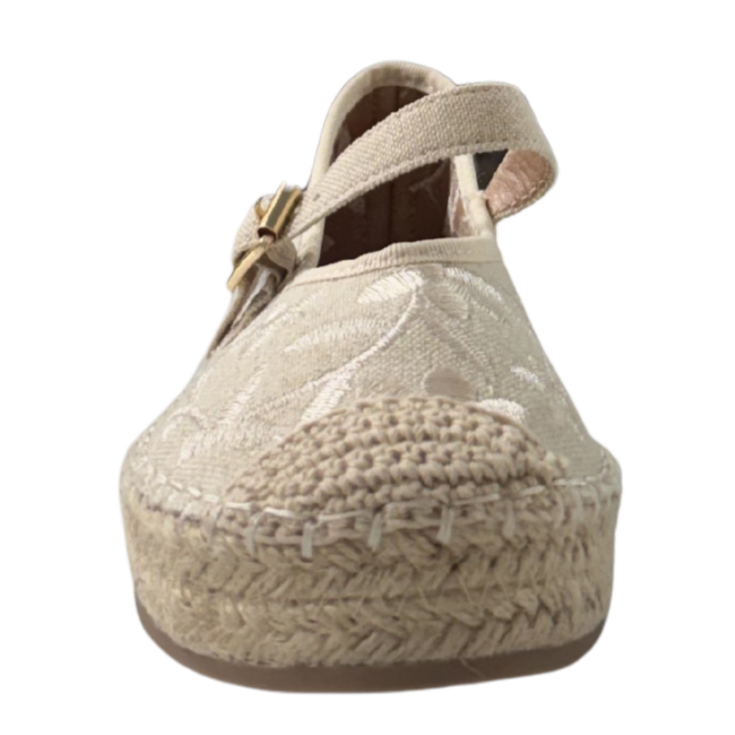 La Esparto Baja Beige Naia es la esencia del verano en su versión más natural y elegante. Su diseño en tono beige con delicado bordado floral crea un estilo suave y femenino, perfecto para quienes buscan comodidad sin renunciar a la elegancia artesanal del esparto.