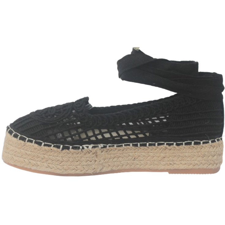 La plataforma de esparto ofrece una base firme y natural, transmitiendo esa sensación veraniega auténtica en cada paso.