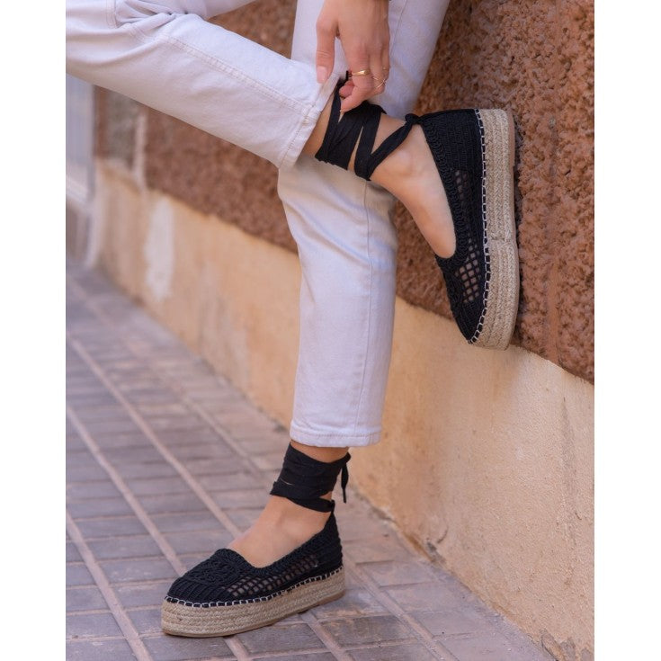 La Cuña de Esparto Dalila Negro es pura personalidad y estilo artesanal. Su diseño en tejido negro trenzado, combinado con la plataforma de esparto natural, crea un contraste moderno y sofisticado que no pasa desapercibido. Perfecta para mujeres que buscan un calzado diferente, cómodo y con carácter para sus looks de verano.