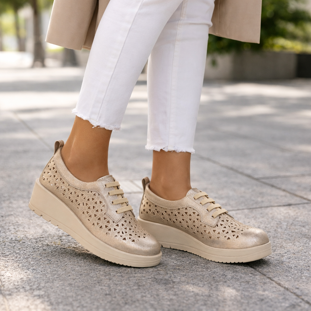 Ilumina tu día a día con el Zapato Cómodo Veluna Platino 212195, un modelo que combina ligereza, estilo y confort en un diseño actual. Su acabado metalizado en tono platino y su elegante troquelado lo convierten en una opción perfecta para quienes buscan un calzado cómodo sin renunciar a un toque sofisticado.