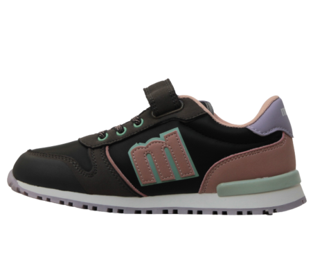 Este modelo combina un acabado mayoritariamente gris oscuro con detalles de color que le aportan carácter. Con cierre de cordones planos bicolores, integra un diseño tipo “jogger” que transmite dinamismo y facilidad de uso.