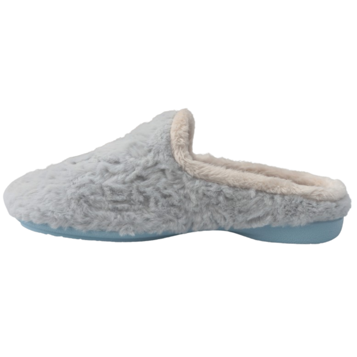 Al calzártelas, sentirás cómo el tejido afelpado acaricia la piel, como un abrazo suave y cálido. La elevación ligera te permite caminar con naturalidad mientras la suela antideslizante te da seguridad en cada paso. El tono celeste genera una atmósfera de calma y frescura, ideal para tus momentos de tranquilidad en casa.